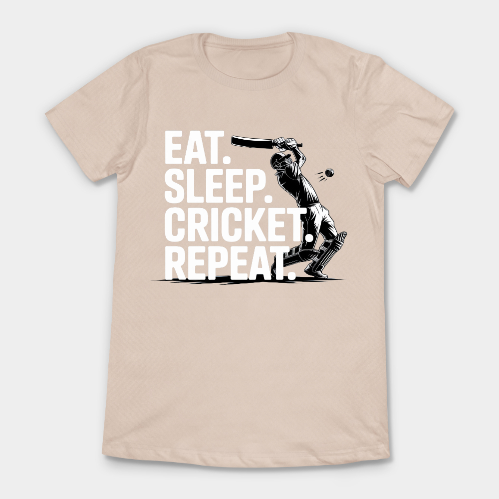 Celebrate your love for cricket with this bold Eat. Sleep. Cricket. Repeat. graphic tee.