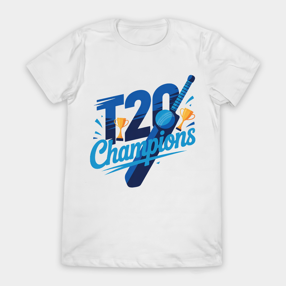 Celebrate victory in style with our T20 Champions – White Edition graphic T-shirt.